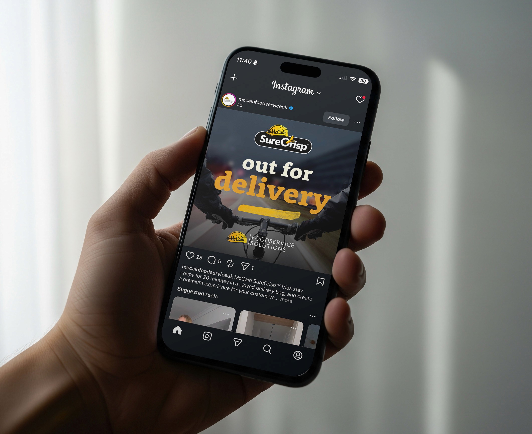 As delivery continues to shape the Away From Home channel, operators face a stubborn challenge: how to deliver consistently crispy fries when so much of the journey is out of their control. Reliance on aggregators and the unpredictability of their delivery drivers put quality at risk long after food leaves the kitchen. Built on deep operator insight, Omne identified a clear tension. Many operators believed their current offering travelled “well enough”, yet frustration ran high around the loss of control at the point of consumption. Aggregator delivery drivers were cited as the number one pain point, and with budgets under intense pressure, tolerance for waste or inconsistency was low. Our campaign, “Together, let’s take control of crispiness” spoke directly to operators’ lived experience, positioning McCain SureCrisp as the solution that restores confidence and consistency in delivery.